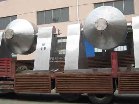 真空干燥机为双锥形的回转罐体,罐内在真空状态下,向夹套内通入蒸汽或热水进行加热,热量通过罐体内壁与湿物料接触,湿物料吸热后蒸发的水汽,通过真空泵经真空排气管被抽走。由于罐体内处于真空状态,且罐体的回转使物料不断的上下内外翻动,故加快了物料的干燥速度,提高干燥效率,达到均匀干燥的目的。